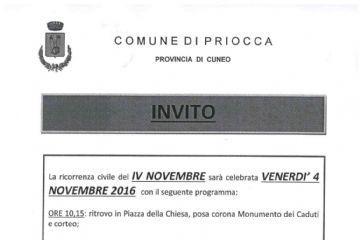 INVITO ALLA CELEBRAZIONE DEL 4 NOVEMBRE