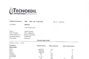 Referto delle analisi, aggiornate all'ultimo semestre 2016, delle acque erogate da Tecnoedil nella rete comunale.